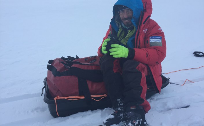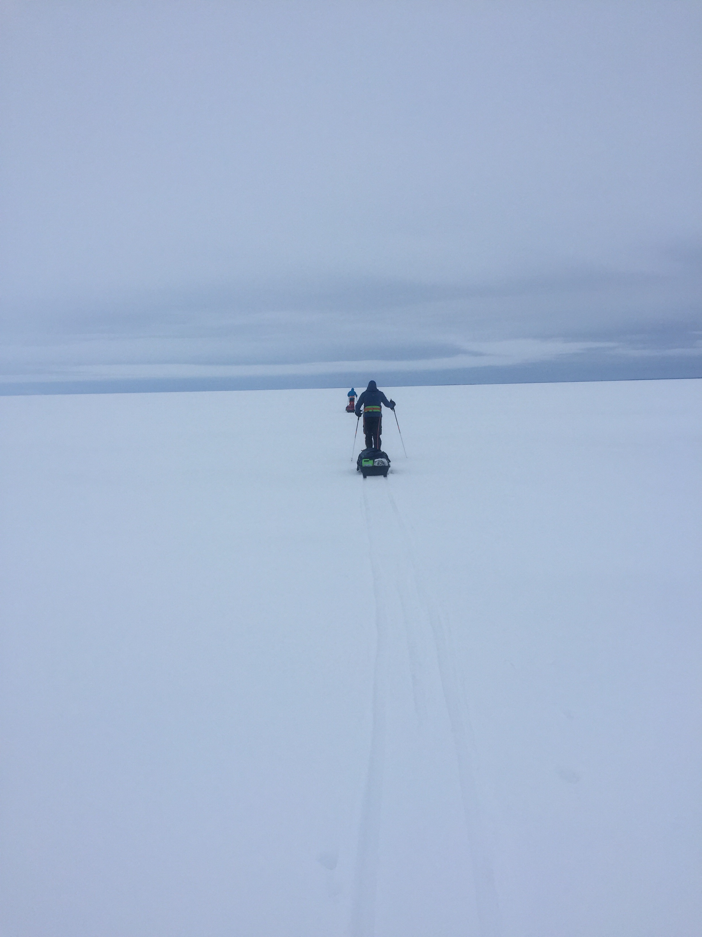 This is a very slow way to progress because we are doing 2.5km/hour -half of what it should be – with a tremendous energy consumption because the effort of lifting the whole ski, boot and the piece of snow underneath. With the skis not touching the surface it takes double to make any progress.